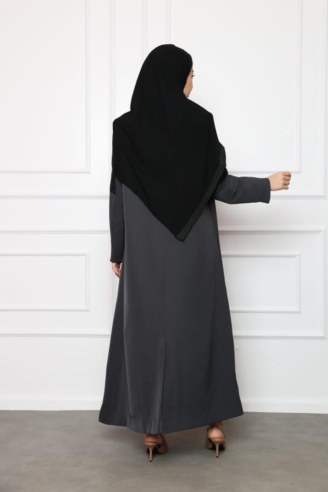 - عباية رصاصي غامق قماش كريب لا يتجعد ومريح طول اليوم